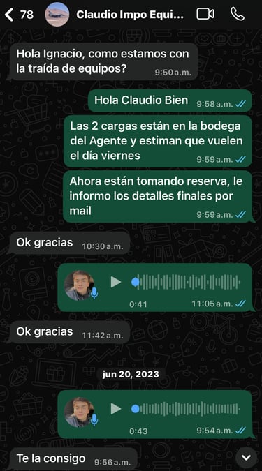 Con Don Claudio siempre movemos mercancía para proyectos del aeropuerto De Santiago de Chile ya sea importaciones y exportaciones temporales para mantenimiento y testeo de Equipos....