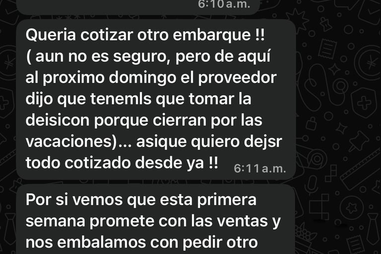 Para Sebastian llevamos trabajando un tiempo, generalmente mueve carga de 2 a 3 veces por año vía Aerea y Marítima, importando textiles desde Francia para su gran tienda de diseño de ropa exclusiva.